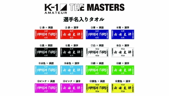 「K-1アマチュア~THE MASTERS vol.2~」11.24(月・祝)東京・後楽園ホール 【K-1公式「THE MASTERS」選手タオル】の受注販売が決定!